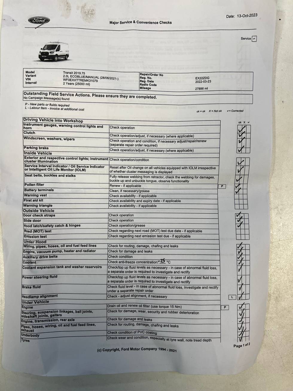 - Service mileage 25,000 miles